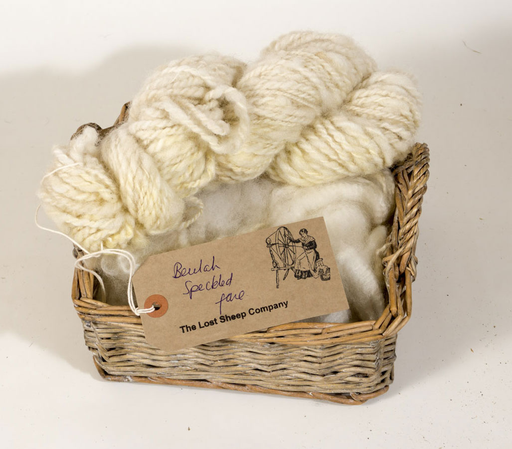 This hill sheep produces a lovely fleece with a delicate crimp that can make a fine soft yarn or a springy rougher yarn. The muddy fleece can be a surprise because after scouring produces a very white yarn with great stitch definition. Being so white it is ideal for dyeing with bright clean colours. Beulah sheep are named after a hilly area in Wales, the longer version being Eppnt Hill and Beulah Speckled Face sheep. Native to Wales and no history of having been cross bred. A joy to spin with silky open locks, for fine ,or lofty yarn that dyes well.